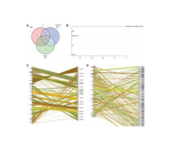 Sparassis latifolia是我國(guó)栽培的名貴食用菌。該研究基于作者課題組2018年通過(guò) Illumina HiSeq 2500測(cè)序獲得的不完整和低質(zhì)量的S. latifolia基因組,通過(guò)ONT和Hi-C技術(shù)得到了S. latifolia SP-C菌株基因組完成圖??偣驳玫搅?.24 Gb的ONT數(shù)據(jù),S.latifolia的測(cè)序深度為198.08X,通過(guò)組裝得到了 41.41 Mb的高質(zhì)量基因組,scaffold和contig N50 的大小分別為3.31和1.51Mb,通過(guò)Hi-C輔助組裝技術(shù)進(jìn)一步組裝成12條染色體水平基因組,這些染色體包含93.56%的堿基,基因組包含17.47%的重復(fù)序列。此外,預(yù)測(cè)到13103個(gè)蛋白質(zhì)編碼基因,其中98.72%的基因得到了功能注釋?zhuān)?jīng)BUSCO評(píng)估,基因組完整度92.07%。在S.latifolia基因組中鑒定出126個(gè)tRNA、75個(gè)rRNA和36個(gè)其他非編碼RNA,利用OrthoMCL對(duì)S. latifolia單拷貝和多拷貝進(jìn)行分類(lèi),發(fā)現(xiàn)S.latifolia SPC與S.crispa SCP的共有基因多于S.latifolia CCMJ1100,系統(tǒng)發(fā)育顯示S.latifolia SPC與S.crispa SCP有更緊密的親緣關(guān)系,MCScanX共線性分析證實(shí)了上述結(jié)果。改進(jìn)的S.latifolia SPC完成圖將有助于進(jìn)一步闡明各種性狀、育種以及相關(guān)分類(lèi)群的進(jìn)化研究。