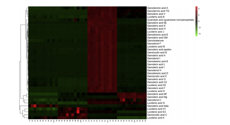靈芝不同部分生物堿類(lèi)化合物熱圖