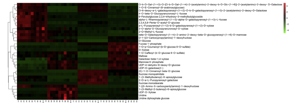靈芝不同部分多糖和核苷類(lèi)化合物熱圖