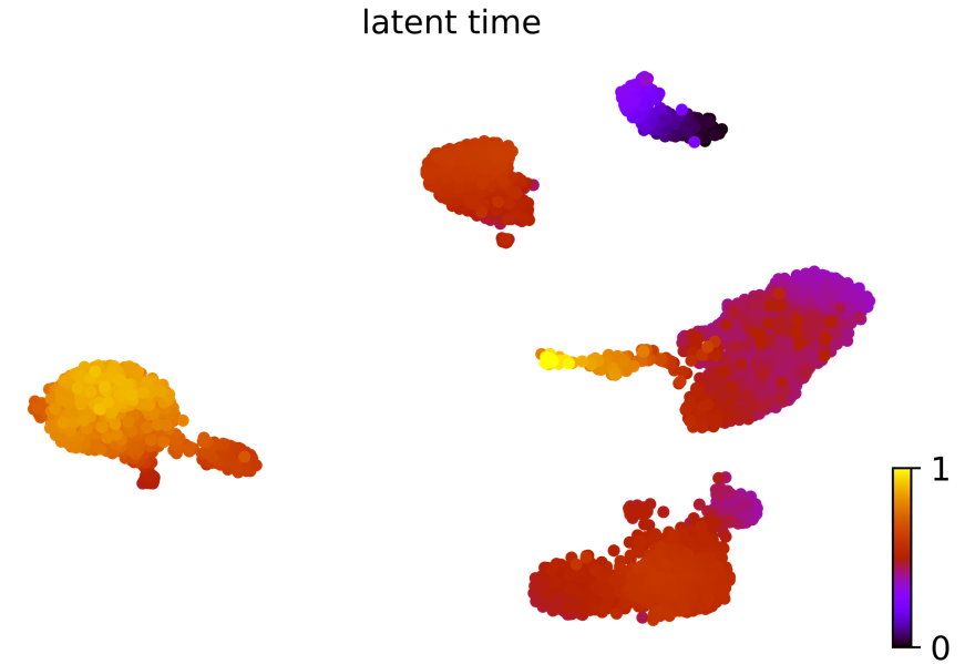 潛伏時間:動力學(xué)模型描述了細(xì)胞過程的潛伏時間(這個潛伏時間代表細(xì)胞的內(nèi)部時鐘,并近似于細(xì)胞在分化時經(jīng)歷的真實時間,僅基于其轉(zhuǎn)錄動力學(xué)。)