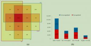 為了揭示與早期SE相關(guān)的基因表達(dá)信息,作者以|log2Fold Change|≥1和FDR<0.001為閾值,篩選差異表達(dá)基因(DEG),四組比較如下:NEC_VS_EC、EC_VS_ICpEC、EC_VS_GE和ICpEC_VS_GE,分別篩選出10642,4180,5846和1785個(gè)差異表達(dá)基因。與NEC相比,EC有4887個(gè)基因表達(dá)上調(diào),5755個(gè)基因表達(dá)下調(diào)。與EC相比,ICpEC有2689個(gè)上調(diào)基因和1491個(gè)下調(diào)基因,GE有3451個(gè)上調(diào)基因和2395個(gè)下調(diào)基因。與ICpEC相比,GE有832個(gè)基因表達(dá)上調(diào),953個(gè)基因表達(dá)下調(diào)。DEGs分析表明,龍眼轉(zhuǎn)錄組在SE過(guò)程中發(fā)生了顯著的動(dòng)態(tài)變化,特別是在NEC向EC的過(guò)渡期。因此,本文提供的龍眼SE轉(zhuǎn)錄組數(shù)據(jù)可能為今后的研究提供了有價(jià)值的分子資源。