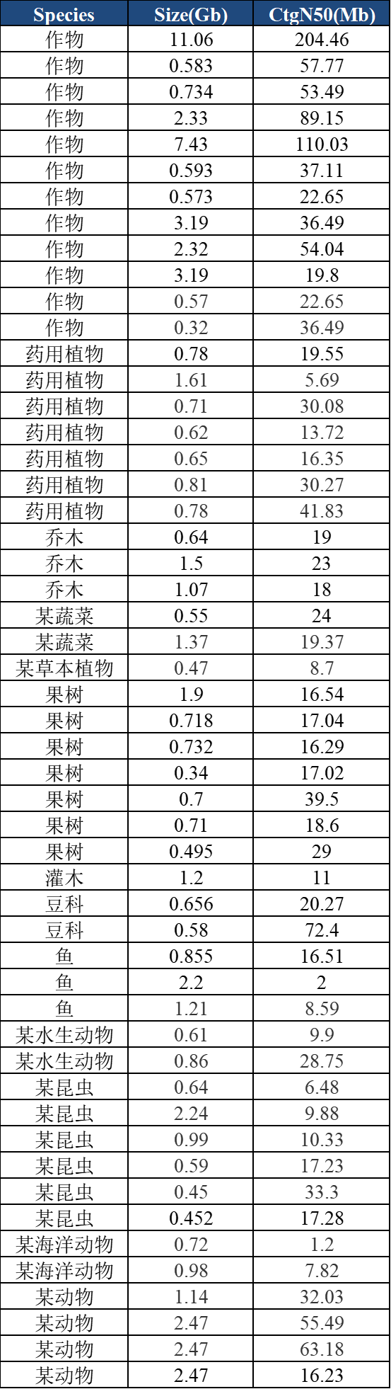 ② 百邁客動(dòng)植物基因組組裝結(jié)果展示(部分)