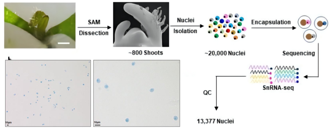 為了有效解決植物單細胞目前研究的桎梏,單細胞核轉(zhuǎn)錄組測序(single-nuclei RNA sequencing,snRNA-seq)應(yīng)運而生。它是指通過提取細胞核,從而在單細胞水平研究基因表達的技術(shù)。