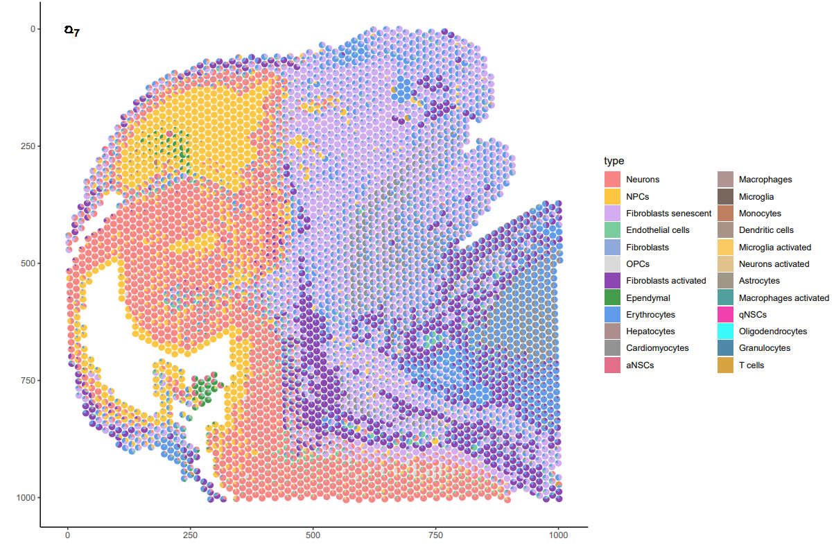 spatialDWLS首先使用細(xì)胞類型富集分析方法來確定哪些類型的細(xì)胞在每個位置具有較高的概率,然后使用阻尼加權(quán)最小二乘法(DWLS)的擴展來確定指定位置的細(xì)胞類型的組成。與現(xiàn)有的去卷積方法相比,關(guān)鍵區(qū)別在于SpatialDWLS包含額外的過濾步驟,以去除不相關(guān)的細(xì)胞類型,從而增強特異性。