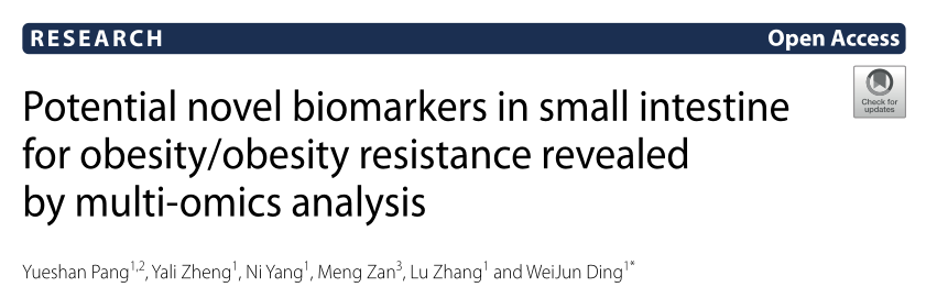Pang Y, Zheng Y, Yang N, et al. Potential novel biomarkers in small intestine for obesity/obesity resistance revealed by multi-omics analysis[J]. Lipids in health and disease, 2022, 21(1): 1-15.