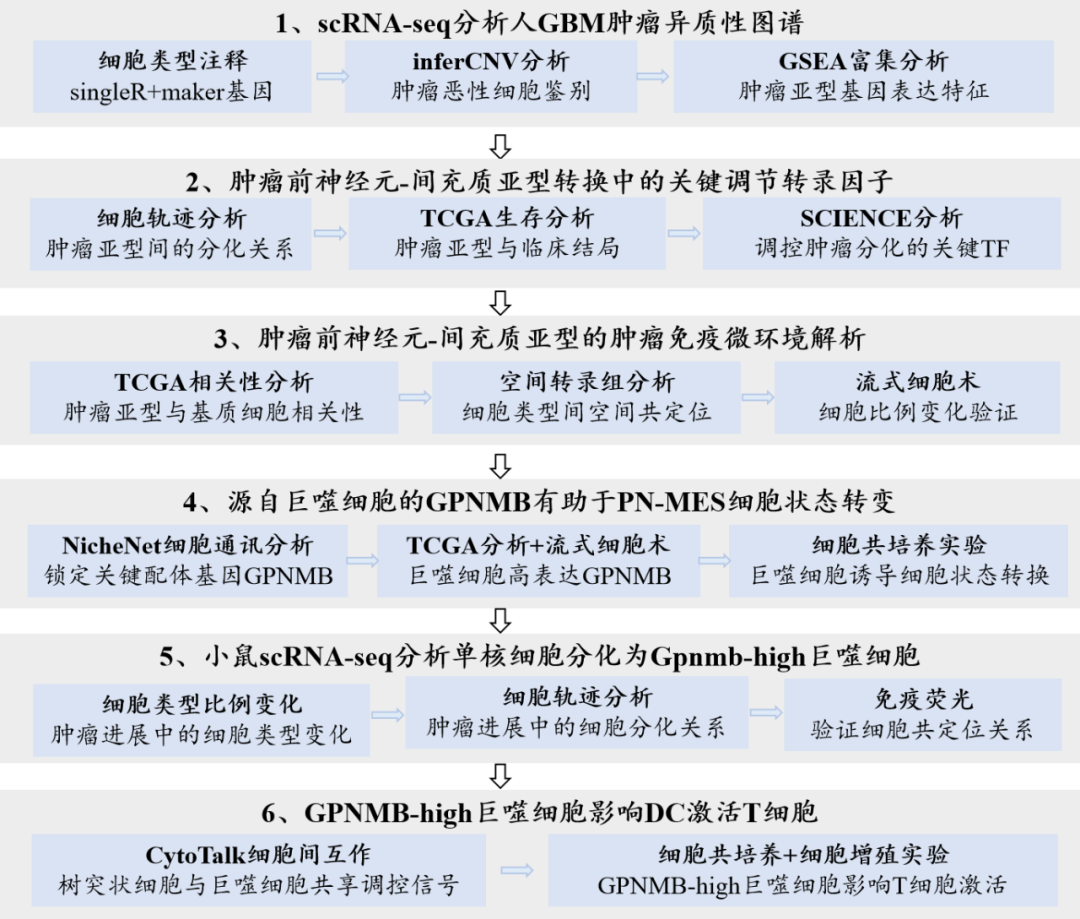1、收集人、小鼠GBM的單細胞RNA測序(scRNA-seq)數(shù)據(jù)、RNA-seq數(shù)據(jù)和空間轉(zhuǎn)錄組(Spatial transcriptomics,ST)數(shù)據(jù);