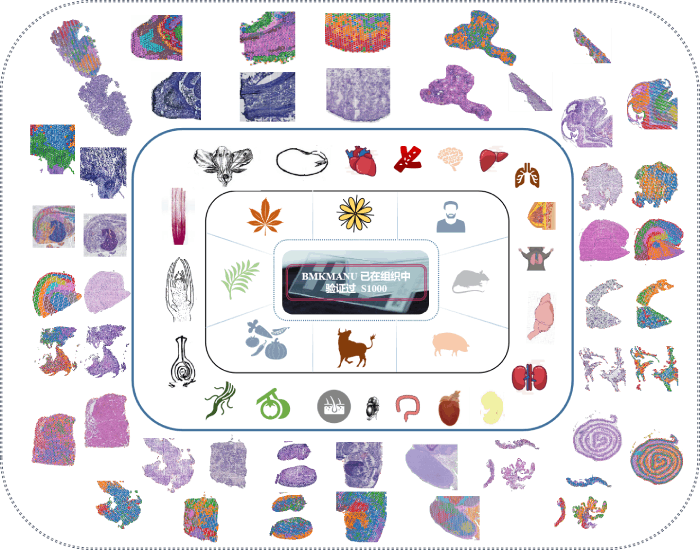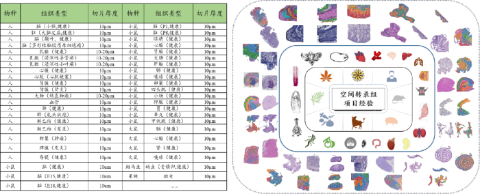 空間轉(zhuǎn)錄組從組織切片、染色到組織透化的實驗過程,也直接關(guān)系到分析數(shù)據(jù)的質(zhì)量,百邁客實驗人員經(jīng)過大量的項目積累,創(chuàng)建了動植物組織優(yōu)化標(biāo)準(zhǔn)體系,保證組織優(yōu)化結(jié)果準(zhǔn)確判讀,可提供高質(zhì)量的報告數(shù)據(jù),目前實測組織類型100+種,包括人、小鼠、大鼠、果蠅、牛等物種的腫瘤樣本、胚胎樣本、肝臟樣本、肺部樣本、腦部樣本等組織類型,尤其是突破了動物血管、軟骨、皮膚類組織的切片、透化難點,為高質(zhì)量數(shù)據(jù)分析提供了保障。