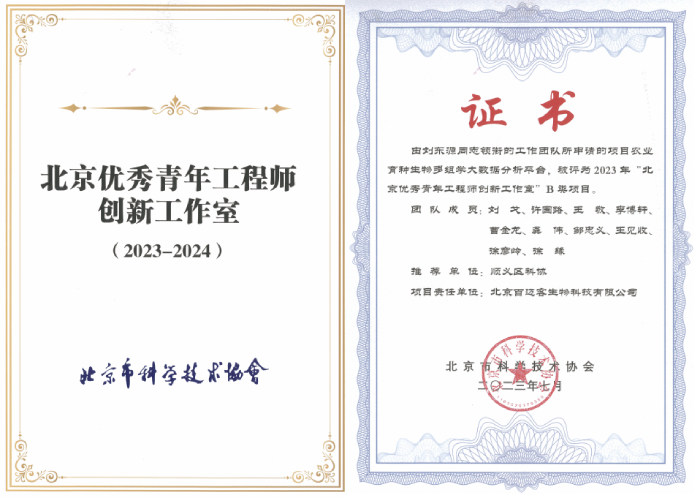 近日,百邁客青年工程師劉東源作為第二十四屆“北京優(yōu)秀青年工程師”稱號的獲得者,代表公司申報“農(nóng)業(yè)育種生物多組學大數(shù)據(jù)分析平臺”項目,成功入選北京市科協(xié)認定的2023年“北京優(yōu)秀青年工程師創(chuàng)新工作室”(以下簡稱“青創(chuàng)室”)。