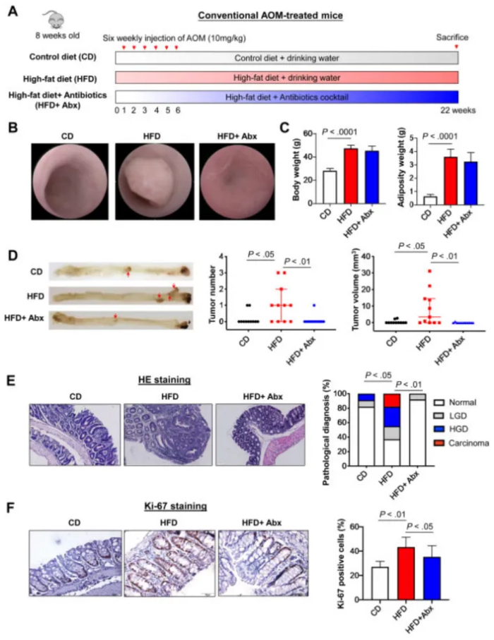 圖1-在AOM模型中,HFD促進了依賴于腸道微生物群的結直腸癌的發(fā)展