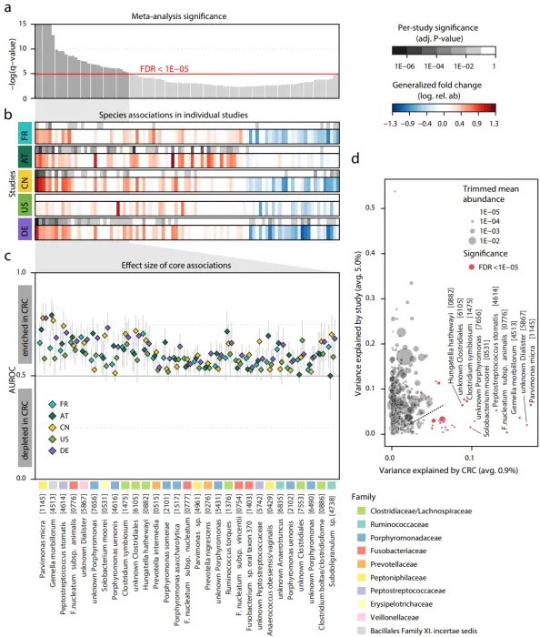 圖2-宏基因組分析確定與結直腸癌密切相關的核心腸道微生物