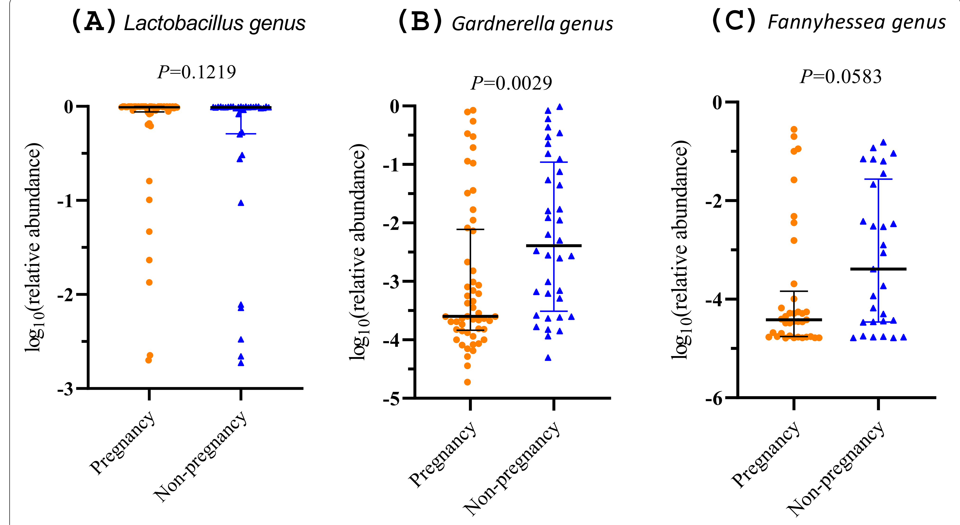 圖3-妊娠組和非妊娠組屬的相對豐度散點(diǎn)圖