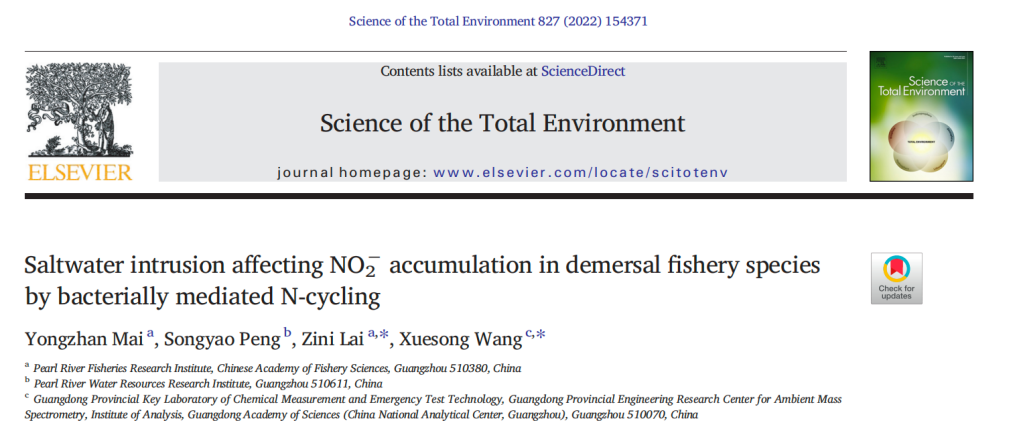 英文名稱:Saltwater intrusion affecting NO2? accumulation in demersal fishery species by bacterially mediated N-cycling