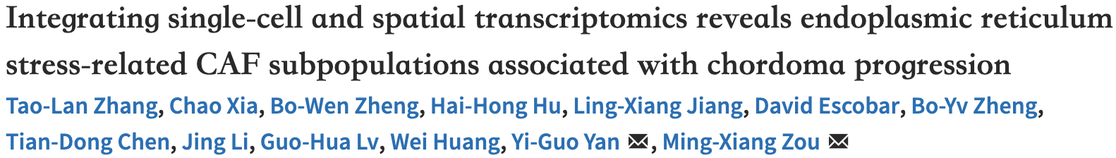 文章標(biāo)題:Integrating single-cell and spatial transcriptomics reveals endoplasmic reticulumstress-related CAF subpopulations associated with chordoma progression