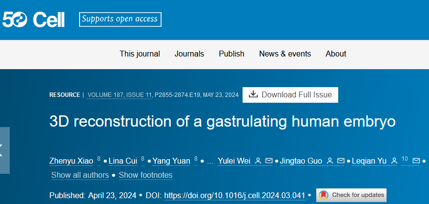 英文標(biāo)題:3D reconstruction of a gastrulating human embryo