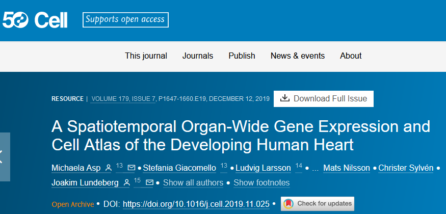 英文標(biāo)題:A Spatiotemporal Organ-Wide Gene Expression and Cell Atlas of the Developing Human Heart