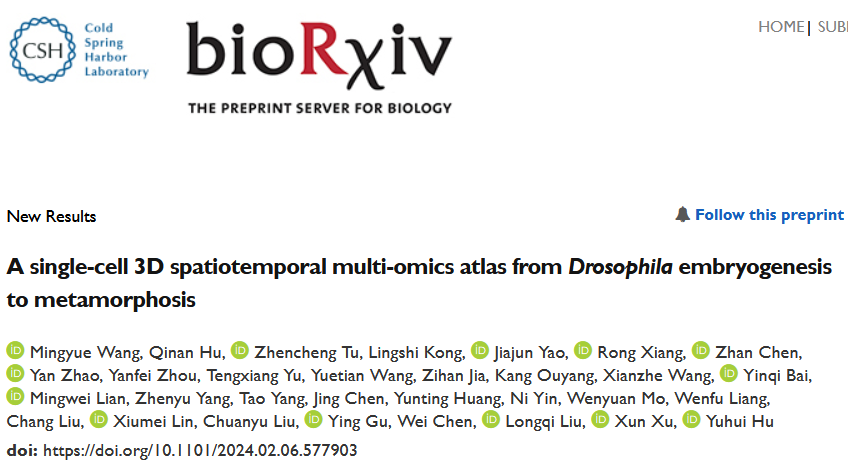 英文標(biāo)題:A?single-cell?3D?spatiotemporal?multi-omics?atlas?from?Drosophila?embryogenesis?to?metamorphosis