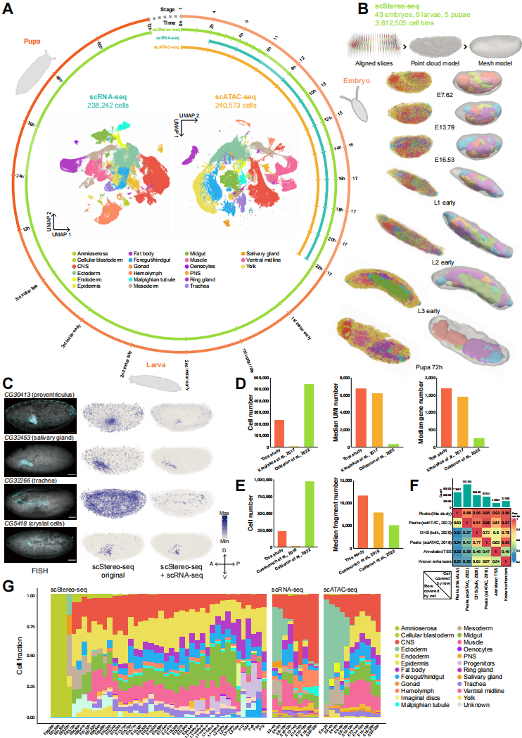 案例二——從果蠅胚胎發(fā)育到蛻變的單細(xì)胞三維時(shí)空多組學(xué)圖譜