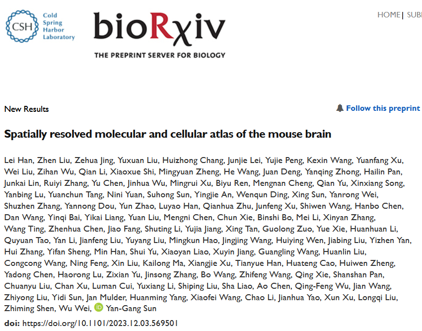 英文標(biāo)題:Spatially resolved molecular and cellular atlas of the mouse brain