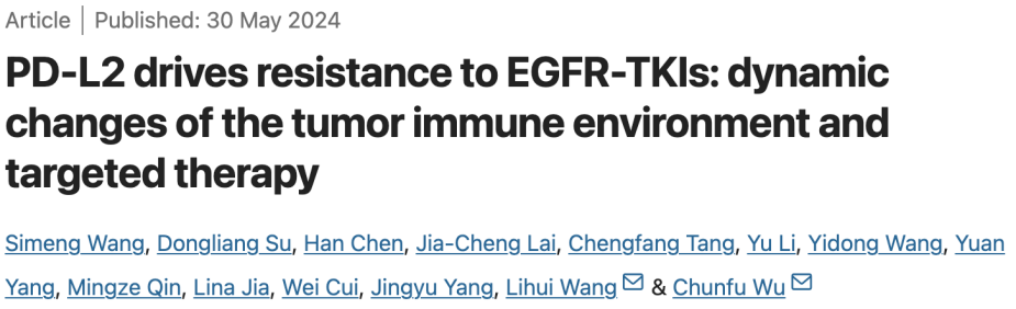 2024年5月,沈陽藥科大學在國際學術期刊cell death & differentiation 發(fā)表一項重要研究成果,題為:PD-L2 drives resistance to EGFR-TKIs: dynamic changes of the tumor immune environment and targeted therapy。使用單細胞 RNA 測序 (scRNA-seq)、TUNEL、酶聯(lián)免疫吸附、流式細胞術、WB、CETSA、CCK-8來剖析腫瘤的耐藥機制。
