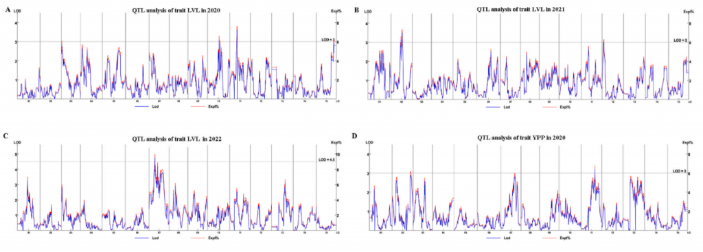 實(shí)驗(yàn)方法:Xin24×Yushu10雜交中選擇212個F1材料: 特異性位點(diǎn)擴(kuò)增片段測序(SLAF-seq);遺傳圖譜構(gòu)建;數(shù)量性狀位點(diǎn)(QTL)定位;GWAS關(guān)聯(lián)(F1群體)