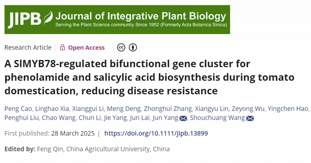 近日,《Journal of Integrative Plant Biology》在線發(fā)表了海南大學(xué)南繁學(xué)院王守創(chuàng)教授團隊題為“A SlMYB78-regulated bifunctional gene cluster for phenolamide and salicylic acid biosynthesis during tomato domestication, reducing disease resistance”的研究論文。首次揭示植物抗病代謝通路中存在雙功能基因簇(BGC2),其核心基因 SlEPS1在馴化中因負選擇導(dǎo)致功能衰退的分子機制:其編碼的雙功能酶兼具催化抗菌物質(zhì)酚胺與免疫激素水楊酸的雙重功能,為植物代謝與抗病研究提供新路徑。