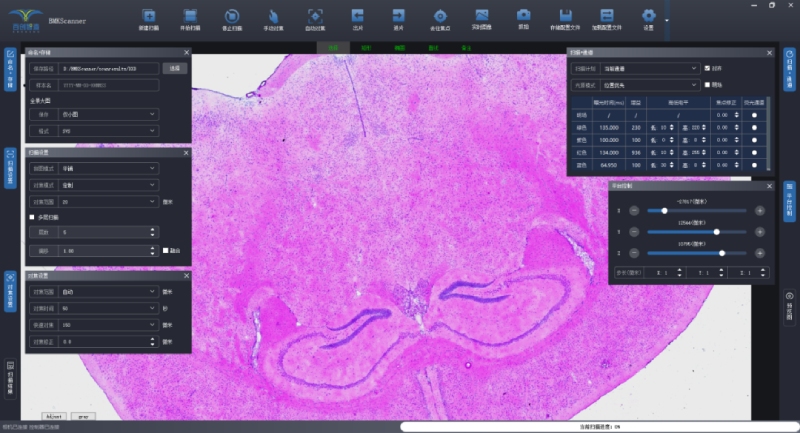 在生命科學(xué)的探索之旅中,技術(shù)的每一次革新都是我們深入理解生命奧秘的堅(jiān)實(shí)基石。百邁客生物推出顯微掃描儀領(lǐng)域的旗艦力作——BH1000掃描儀,它將引領(lǐng)我們邁入空間組學(xué)成像的新紀(jì)元。BH1000掃描儀不僅可以實(shí)現(xiàn)人體、動(dòng)物、植物以及各類玻片標(biāo)本的快速全切片掃描成像,更以其卓越的性能全面滿足百創(chuàng)空間組學(xué)實(shí)驗(yàn)的高端成像需求。其可以實(shí)現(xiàn)明場(chǎng)以及熒光的原片高清無(wú)錯(cuò)成像,結(jié)合百創(chuàng)S空間系列細(xì)胞分割算法,能夠?qū)崿F(xiàn)精準(zhǔn)的空間單細(xì)胞分割,為空間組學(xué)細(xì)胞層面的研究提供了強(qiáng)有力的支持。