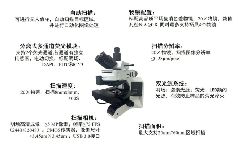 50S內(nèi)可完成8mm*8mm 20X掃描,支持掃描25mm*60mm,原片明場(chǎng)及原片熒光成像