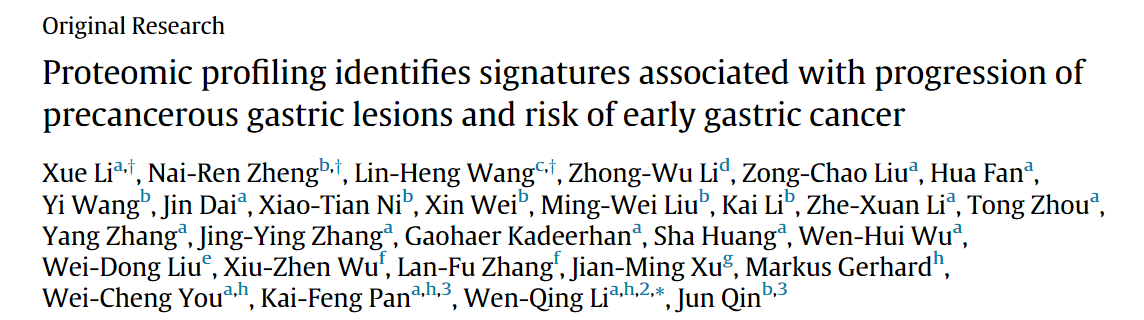 中文題目:借助蛋白質(zhì)組學(xué)分析與胃癌前病變和早期胃癌相關(guān)的特征