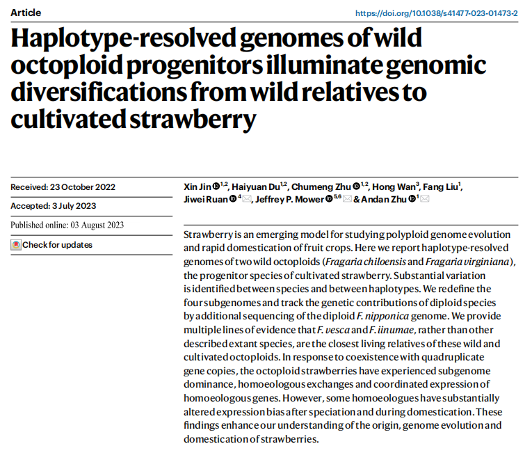 英文題目:Comprehensive genomic and phenotypic analyses reveal the genetic basis of fruit quality in litchi
