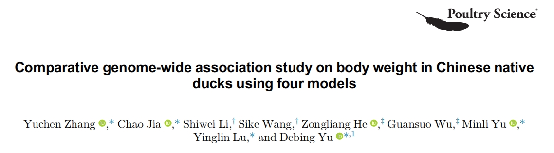 鴨子為人類消費(fèi)提供肉、蛋、羽毛等產(chǎn)品,中國是世界上最大的鴨肉消費(fèi)國。金陵白鴨做為我國優(yōu)質(zhì)的選育品種,具有優(yōu)良的生長速度和肉質(zhì)品質(zhì)。從孵化到上市的整個(gè)時(shí)期,鴨子的體重逐漸增加,這一過程由復(fù)雜的生理和生化機(jī)制調(diào)控,器官和骨骼的發(fā)育是體重增加的關(guān)鍵因素,全基因組關(guān)聯(lián)分析(GWAS)是許多牲畜和家禽物種研究生長和發(fā)育的遺傳機(jī)制的常用方法,然而,現(xiàn)有的一些關(guān)于鴨生長發(fā)育性狀的GWAS研究測序深度較低,發(fā)現(xiàn)的候選基因很少。