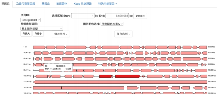 云平臺內(nèi)置【基因組圖譜展示工具】,點擊即可查看基因組環(huán)形圖、基因位置分布等信息,直觀掌握基因組結(jié)構(gòu)(示意圖如下)