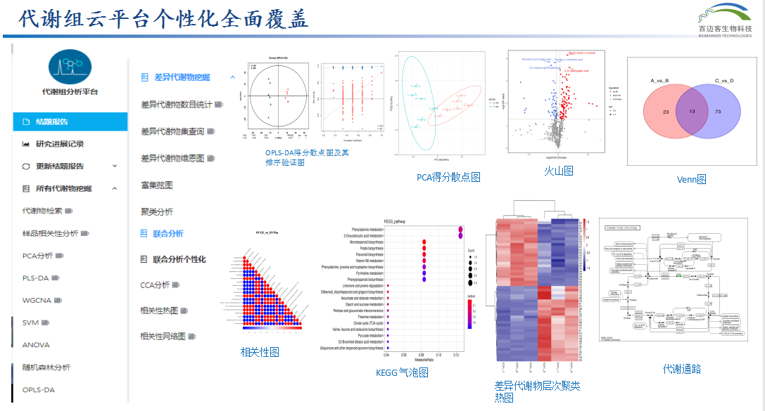此外,百邁客提供個(gè)性化可視化交互—50+個(gè)性化功能+圖片交互(字體及配色調(diào)整、布局變換、數(shù)據(jù)篩選等),數(shù)據(jù)挖掘一網(wǎng)打盡;一站式科研服務(wù)—操作簡單,85%可視化交互覆蓋率,分析不限時(shí)不限次;光速周期—常規(guī)分析1min,分析結(jié)果極速可得!
