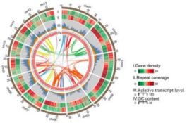 共預(yù)測(cè)得到33366個(gè)基因,平均每100Kb具有6.8個(gè)基因。非編碼RNA注釋結(jié)果為278 miRNAs, 1,395 tRNAs, 455 rRNAs, and 518 snRNAs。通過(guò)注釋已組裝基因組的50.96%為重復(fù)序列,其中LTR的比例占全基因組的38.64,包含Gypsy (30.52%) 和 Copia (5.48%)。