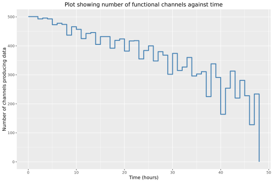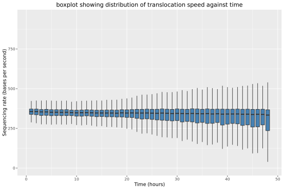 此部分內(nèi)容統(tǒng)計了隨測序時間變化,測序累計序列個數(shù),堿基個數(shù),測序速度和有效工作納米孔數(shù)等指標的變化情況。