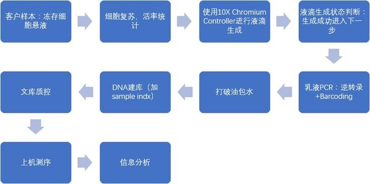 單細(xì)胞測(cè)序平臺(tái)系統(tǒng)集成:細(xì)胞分離捕獲,微流控芯片擴(kuò)增,數(shù)據(jù)分析。解決單細(xì)胞測(cè)序兩大難點(diǎn):?jiǎn)渭?xì)胞分離捕獲,極低量 RNA 反轉(zhuǎn)錄擴(kuò)增。整體的項(xiàng)目流程從樣品接收到項(xiàng) 目交付如下圖: