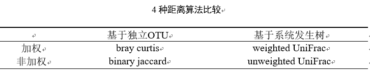 Beta 多樣性分析主要采用 binary jaccard、 bray curtis、 unweighted Unifrac(限細(xì)菌)、weighted Unifrac (限細(xì)菌)等4種算法計(jì)算樣品間的距離,那么這四種算法都有什么差別呢?